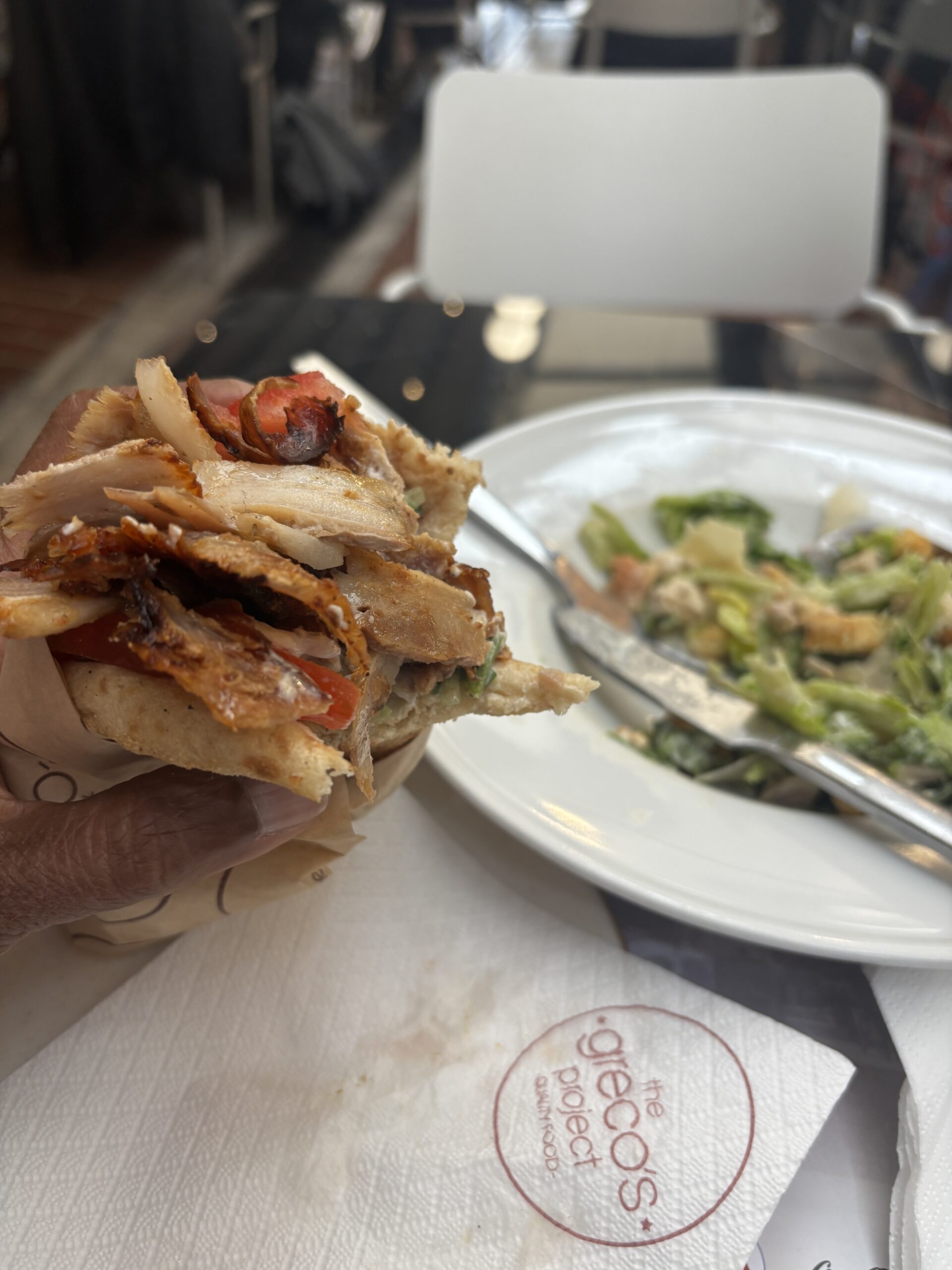 The following week, I checked into the Crowne Plaza Athens hotel for 5 days. For this stay, I used one of my suite rewards, which allowed me to book a Junior Suite for the cost of a standard room. But since I paid with IHG points, it was also free. This hotel was close to the city center, which was about a 20-25 minute walk. I walked the first day to the center to get on the hop on/off sightseeing tour bus. I purchased a 3-day pass because I planned to use this bus as my personal taxi since the strike was still ongoing (except on weekends). My first day of riding, I rode the full 1.5 hours and saw some amazing sights. Afterwards, I walked around the area, which was packed full of us tourists. I stopped for lunch and had a souvlaki, which is one of the most popular food items in Greece.