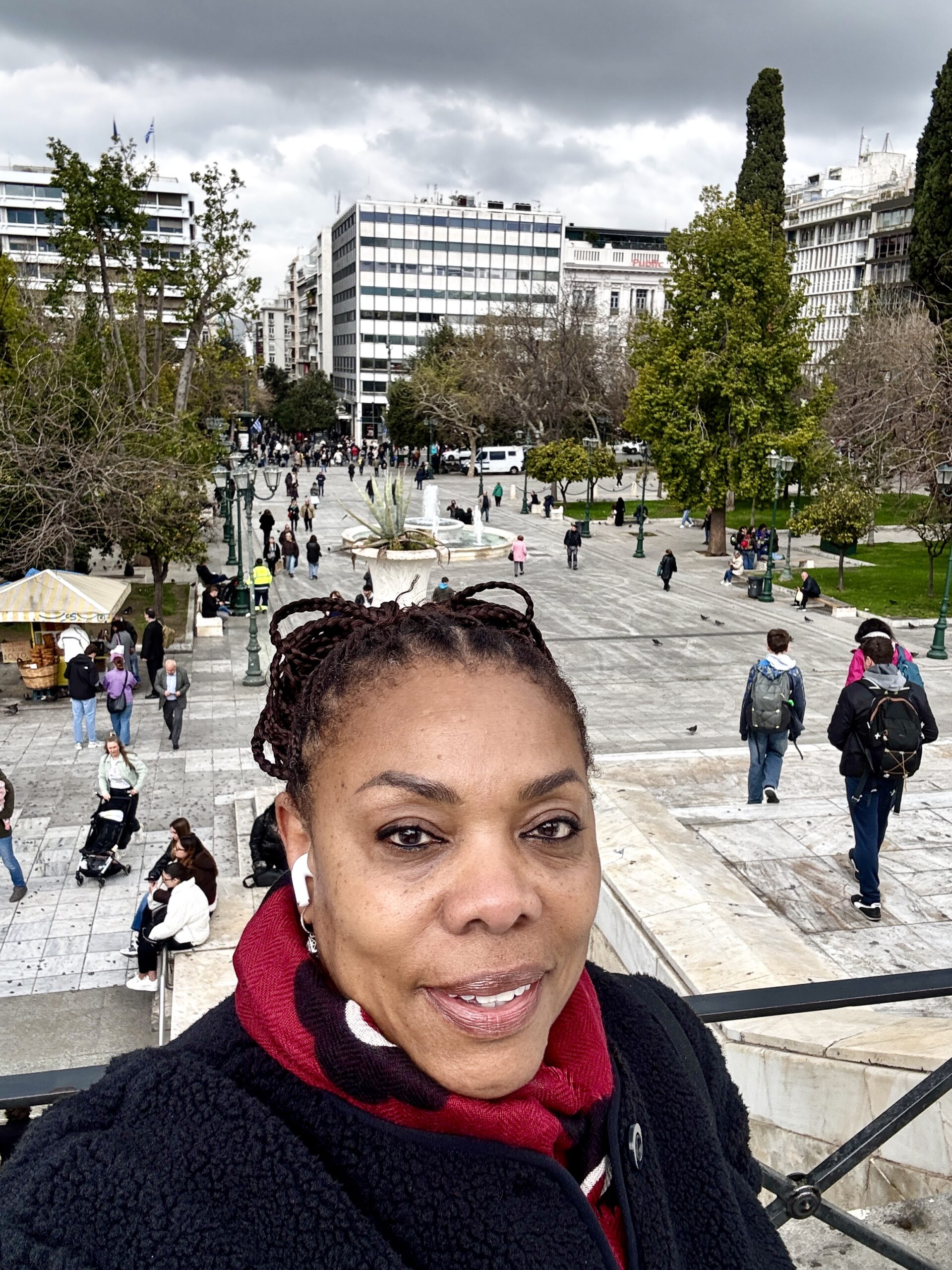 I took a break from Athens and flew to Santorini. When I returned to Athens, I stayed at the Grand Hyatt hotel for 3 days. I came back to Athens for logistical reasons (flight to Spain). The Hyatt is not one of the brands I’ve stayed at much during my retirement journey, but I am a Discoverist member (2nd level). To my surprise, I was blessed with Lounge access and an upgraded deluxe room. I say surprised because I needed to be 2 more levels in order to get lounge access. The favor of God!!! He knows His baby girl loves getting free meals and rooms to stretch out in. 😊