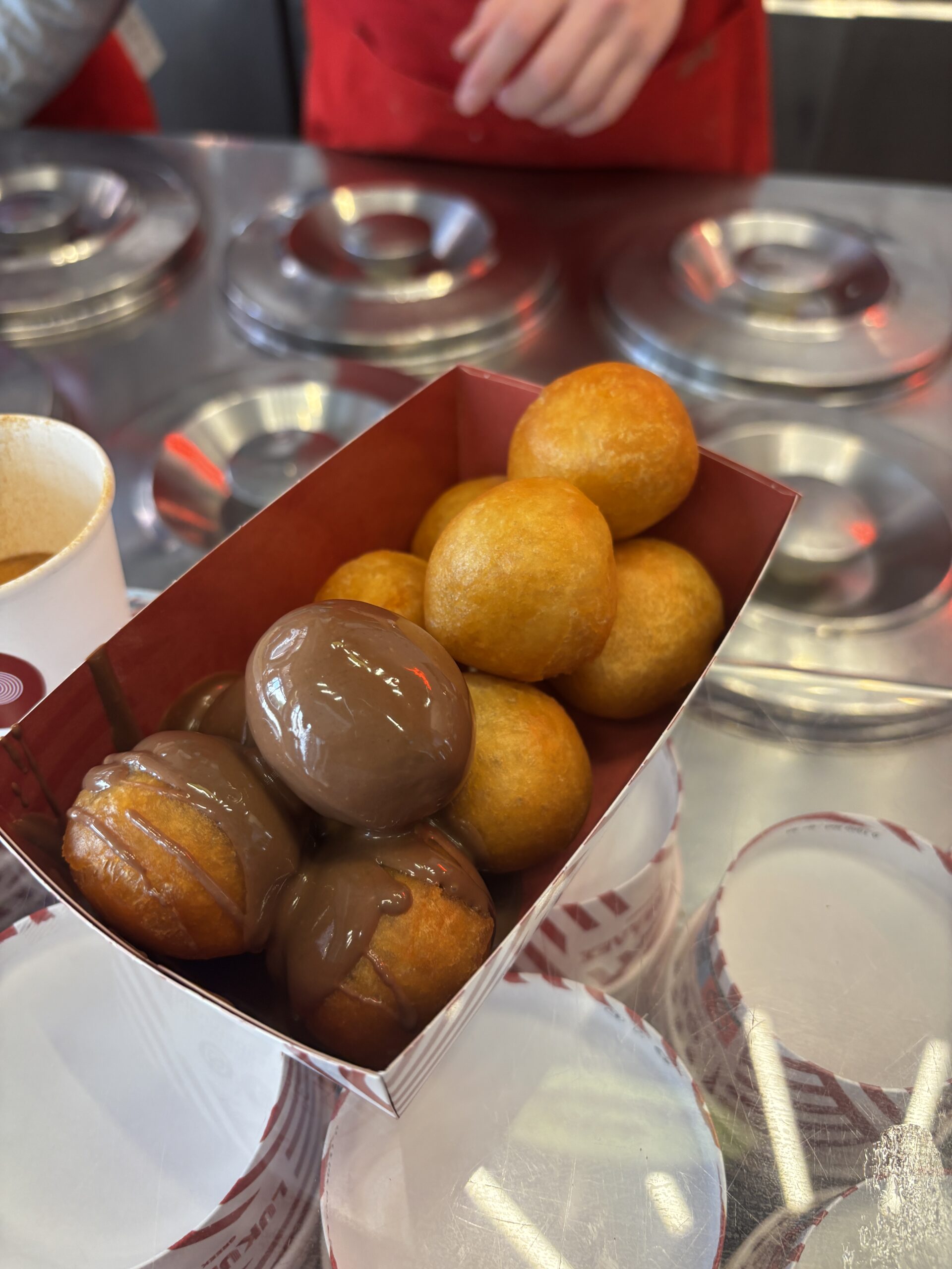 I had lunch in the City Center again but at TGI Fridays. While there, I was talking with a friend on the phone, and she had mentioned these doughnuts at Loukoumades that I should try. As luck would have it, the shop was around the corner from TGIF. I got my order of 10 mixed with the original (honey & cinnamon) and chocolate praline. I didn’t like the original flavor but L O V E D the chocolate praline. And because they put so much chocolate in the box container, I was able to roll the other doughnuts into the chocolate. Oh, these were so good.