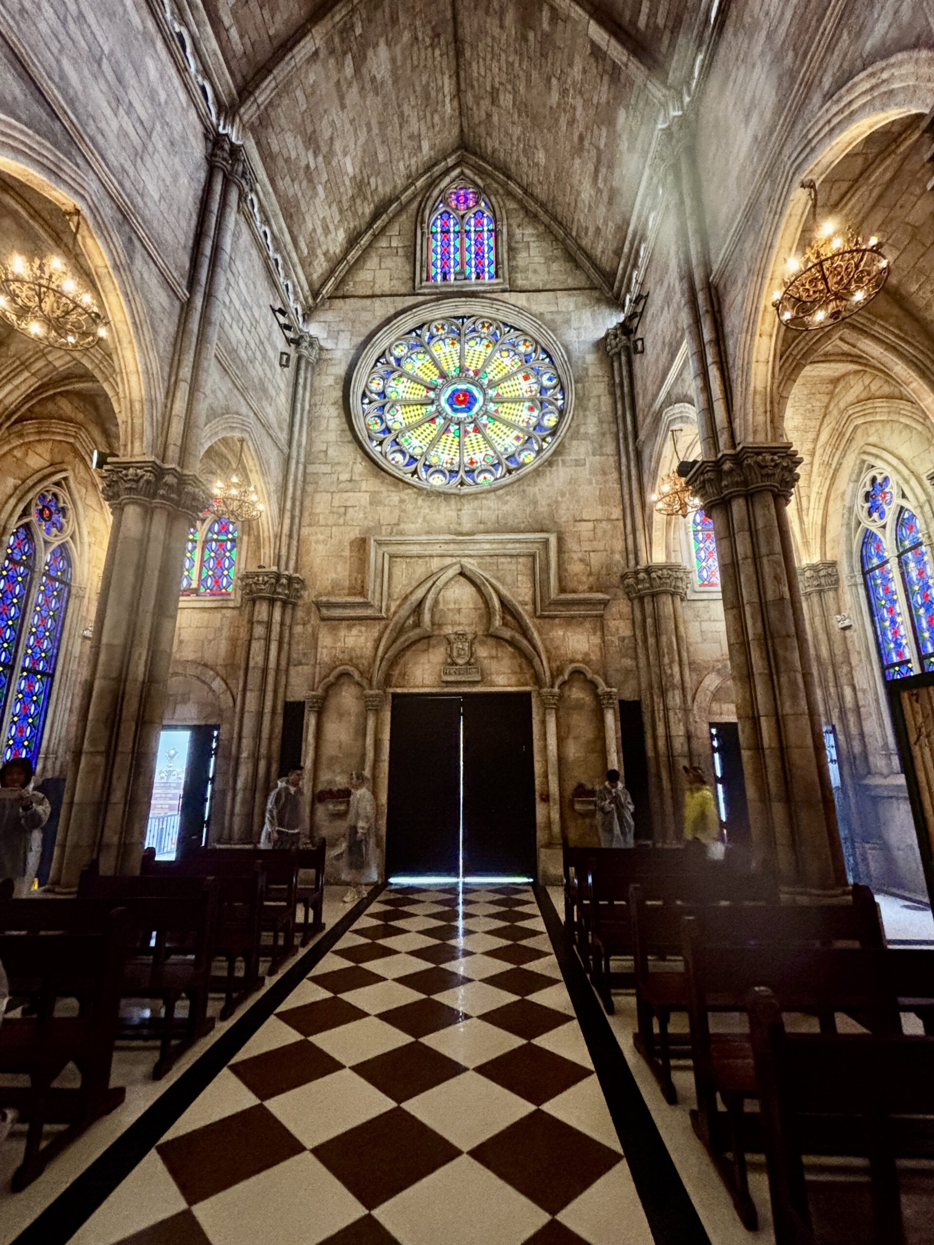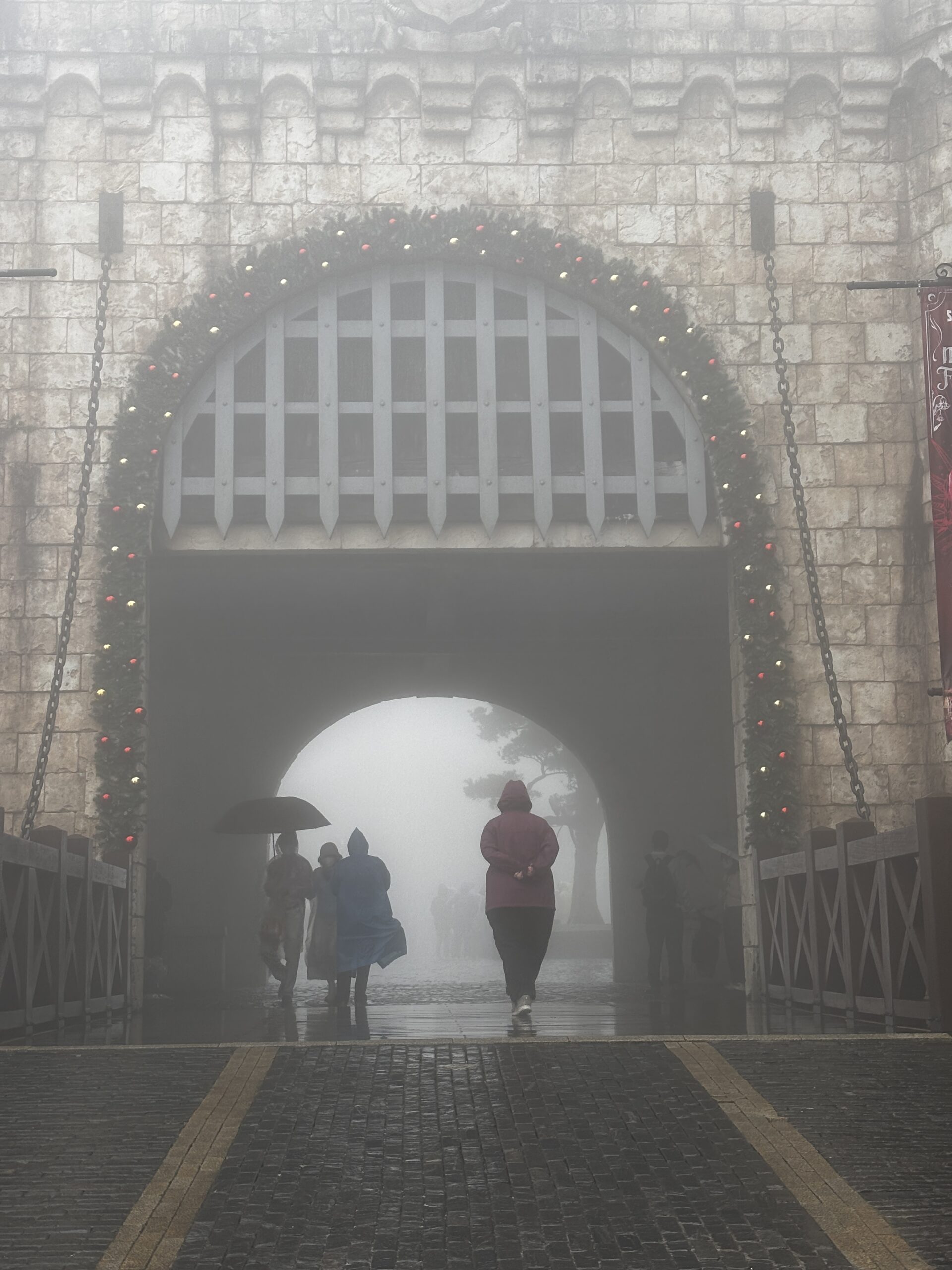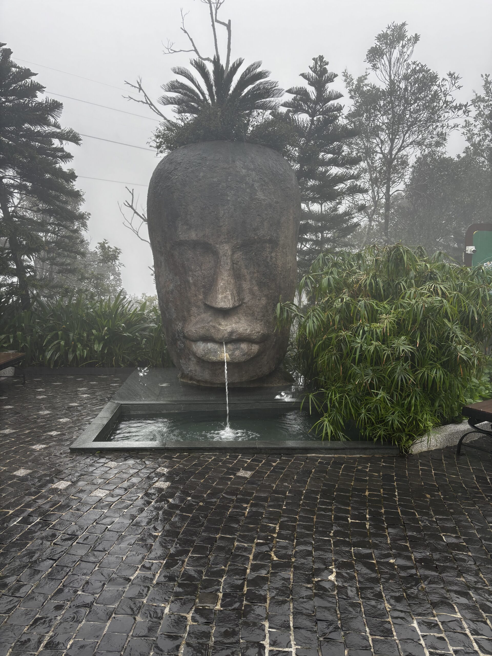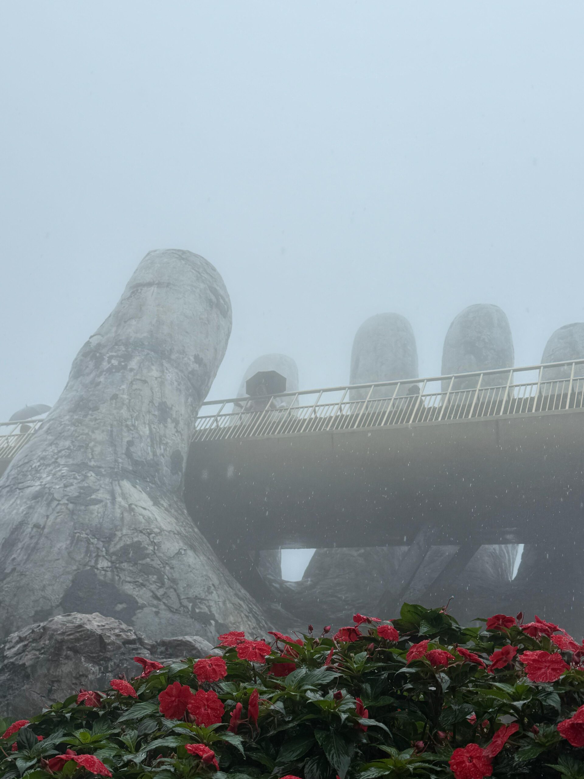 I had one of the best sightseeing adventures at the Golden Hand Bridge (1,414 meters above sea level). To get to the bridge you first need to ride a cable car for about 20 minutes. The cable car isn’t moving slow; it’s just a long distance from the bottom to the top. Even then you haven’t reached the bridge. You have to ride a funicular for a short distance and finally you’re there. By the time we reached the area, it begins to rain. I bought a plastic raincoat and kept it going. Seeing the bridge in person was AMAZING!!! I was glad that we were able to see the bridge cause a lot of the town up there was not very visible. There’s a lot to see and do up there but because of the rain and fog, we (me and the Colorado couple) decided to get some good pictures and head back to the city.
