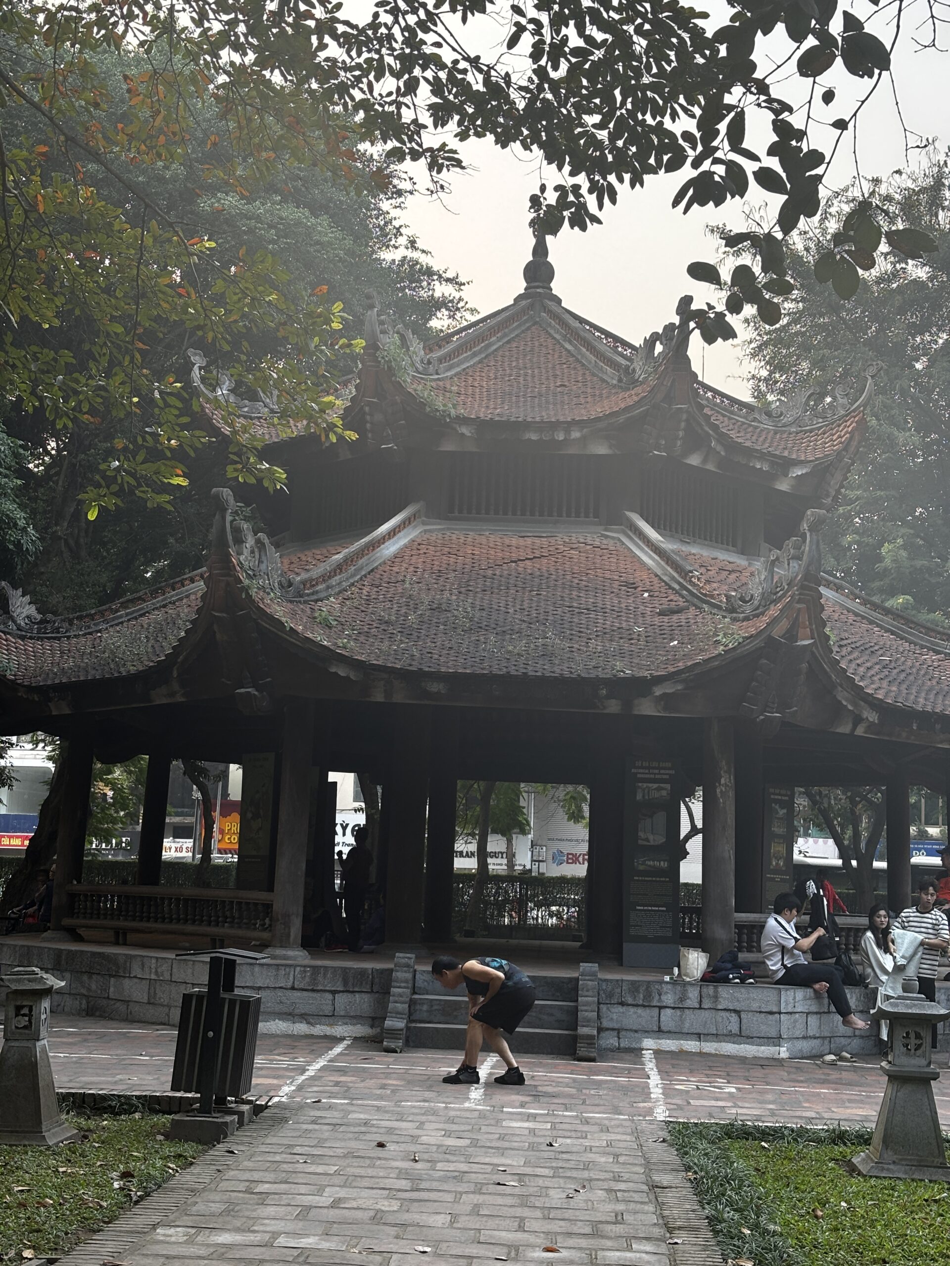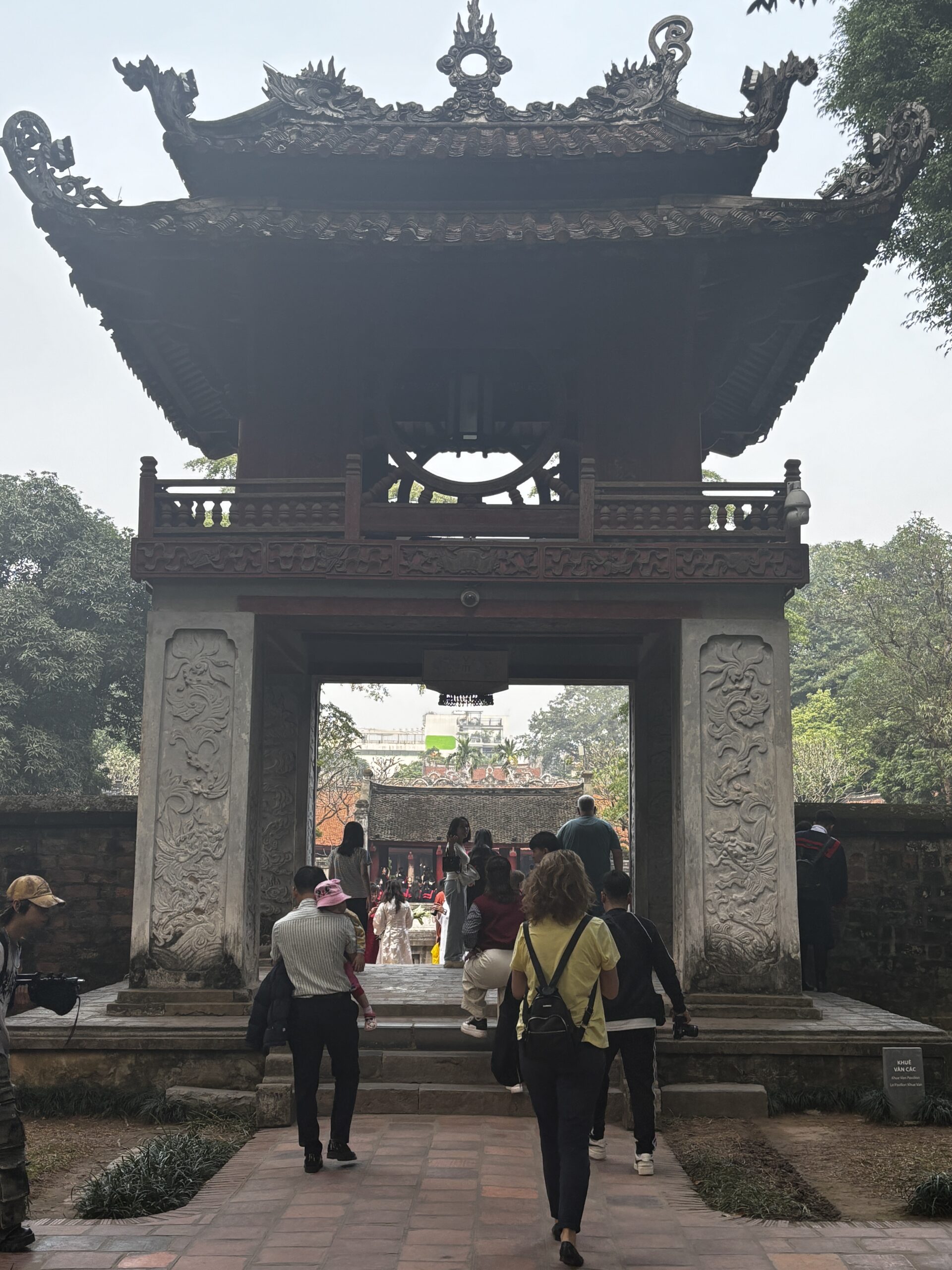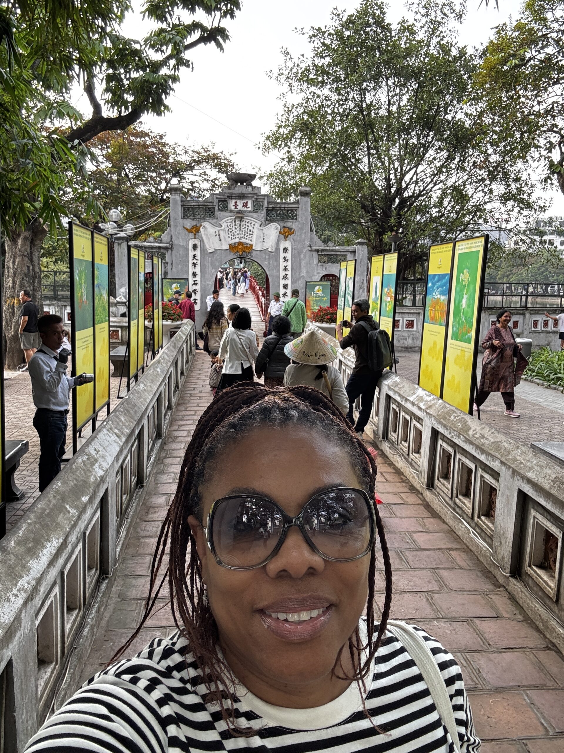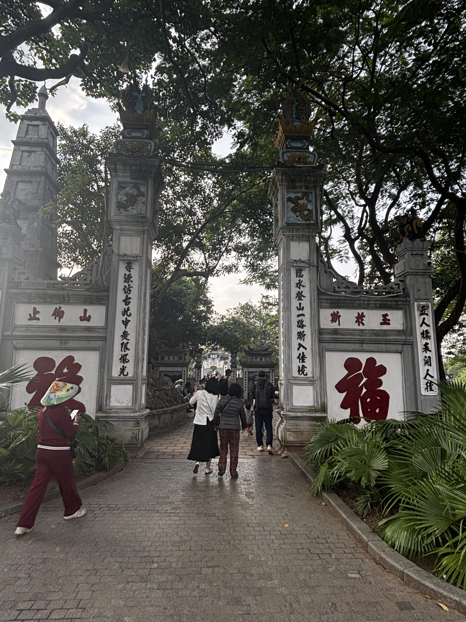 I got a chance to ride the hop on/off sightseeing bus and saw a couple of areas that I later visited on my own. One return visit was to the Temple of Literature. When I arrived I saw a large group of school kids dressed in what looked like graduation caps and gowns. Navigating my way through the crowd of students, I was able to see inside and around the temples. The students began to sing so I stopped to watch. As I turned to leave, there were 2 young girls asking if they could take a picture with me. I’ve heard of this from people who have visited China, but these girls nicely asked, whereas the folks in China will sneak a picture or stand near you and snap.