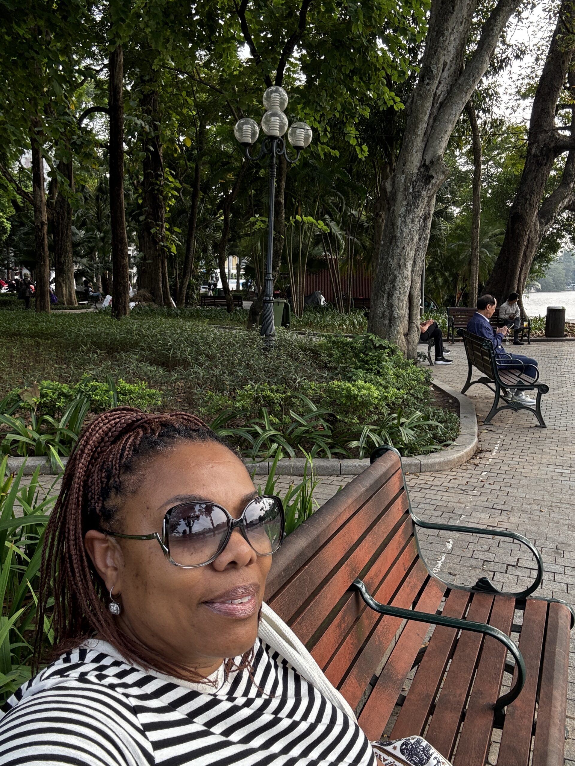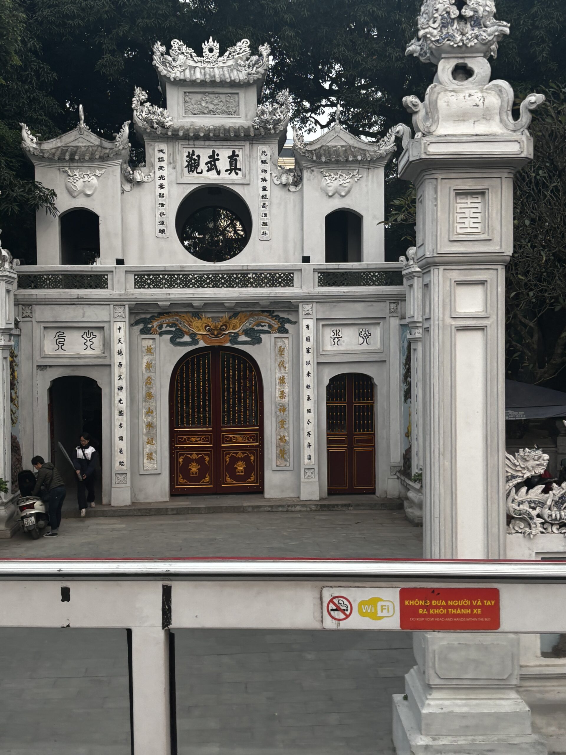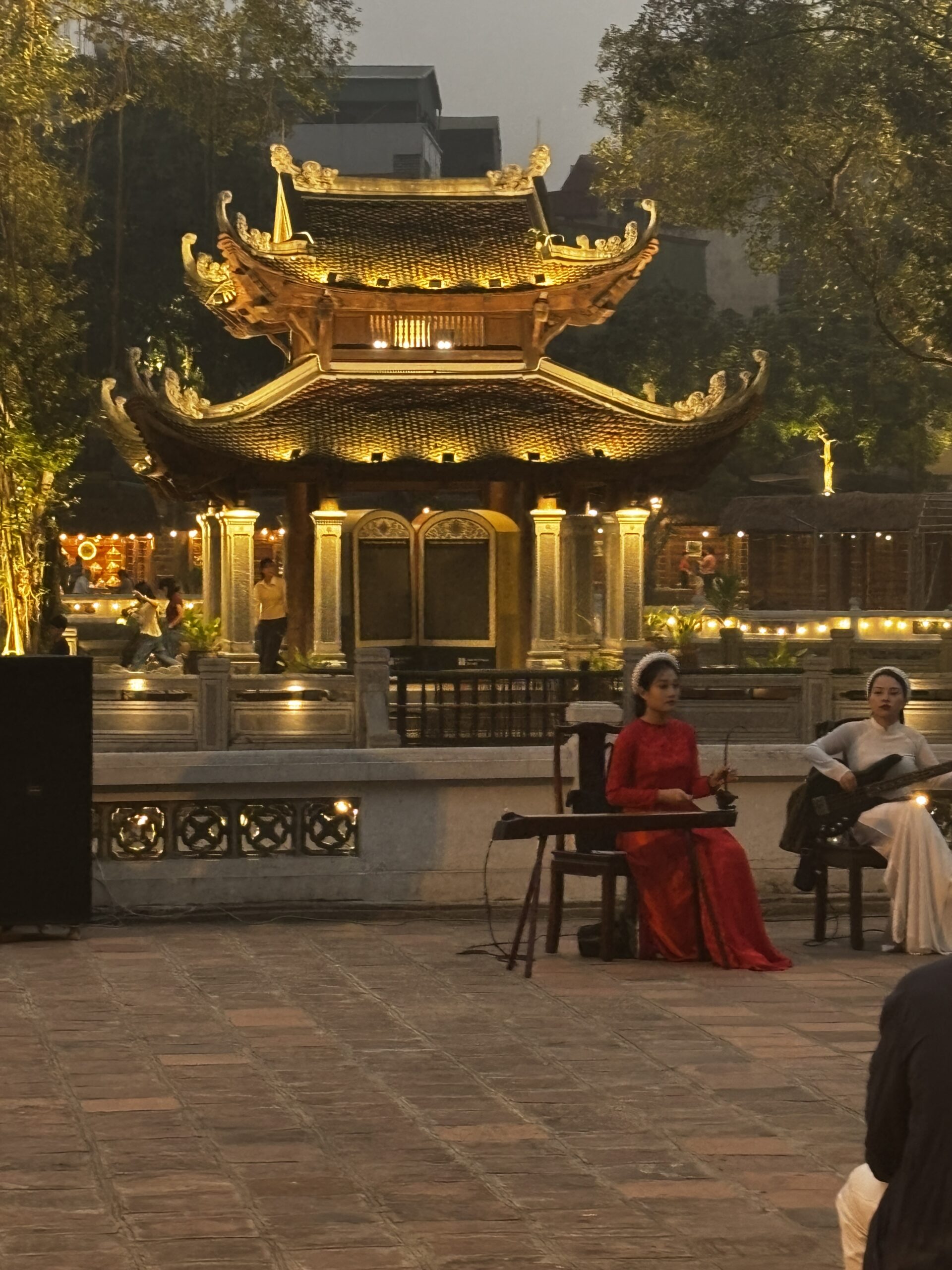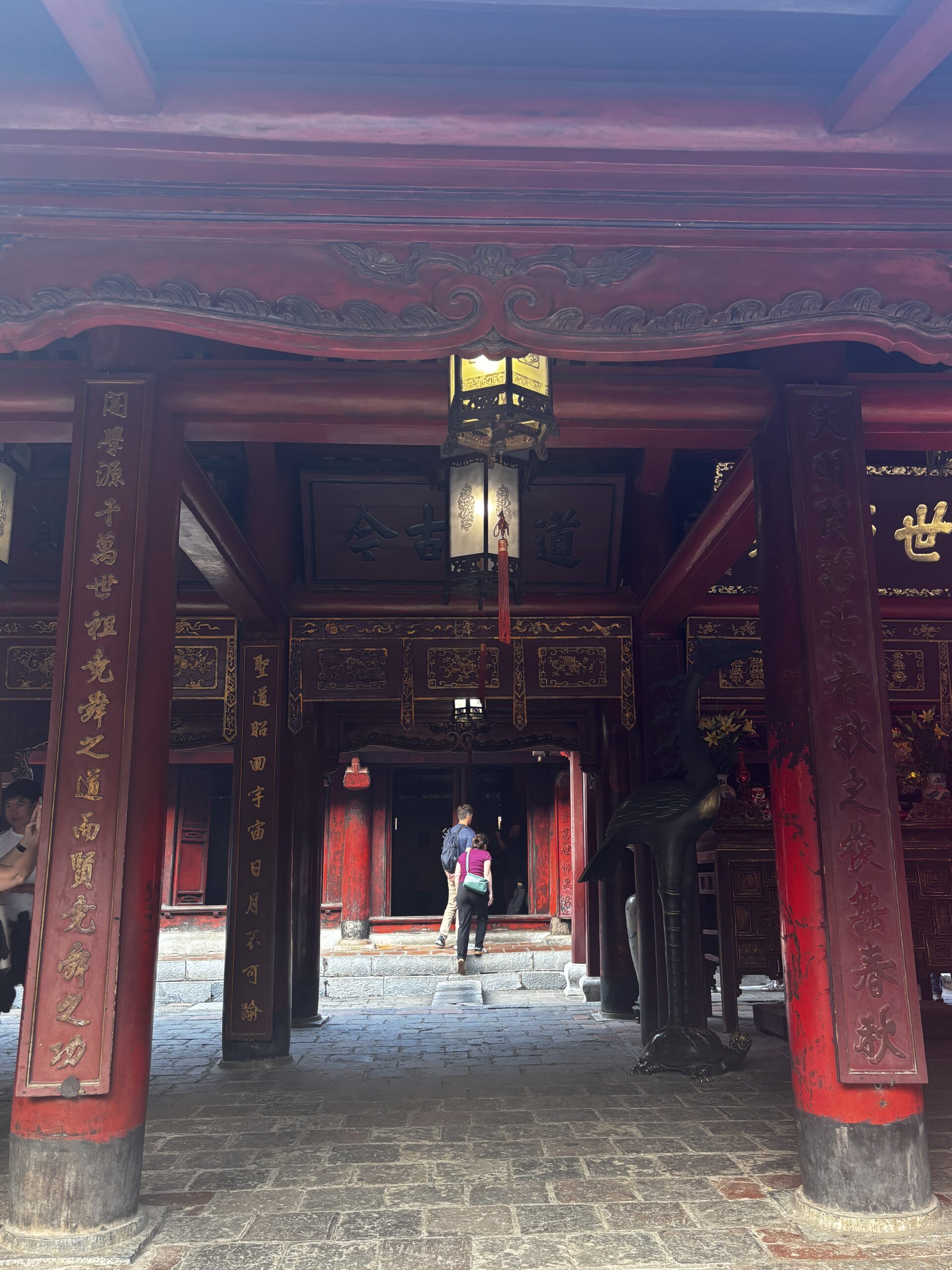 I got a chance to ride the hop on/off sightseeing bus and saw a couple of areas that I later visited on my own. One return visit was to the Temple of Literature. When I arrived I saw a large group of school kids dressed in what looked like graduation caps and gowns. Navigating my way through the crowd of students, I was able to see inside and around the temples. The students began to sing so I stopped to watch. As I turned to leave, there were 2 young girls asking if they could take a picture with me. I’ve heard of this from people who have visited China, but these girls nicely asked, whereas the folks in China will sneak a picture or stand near you and snap.