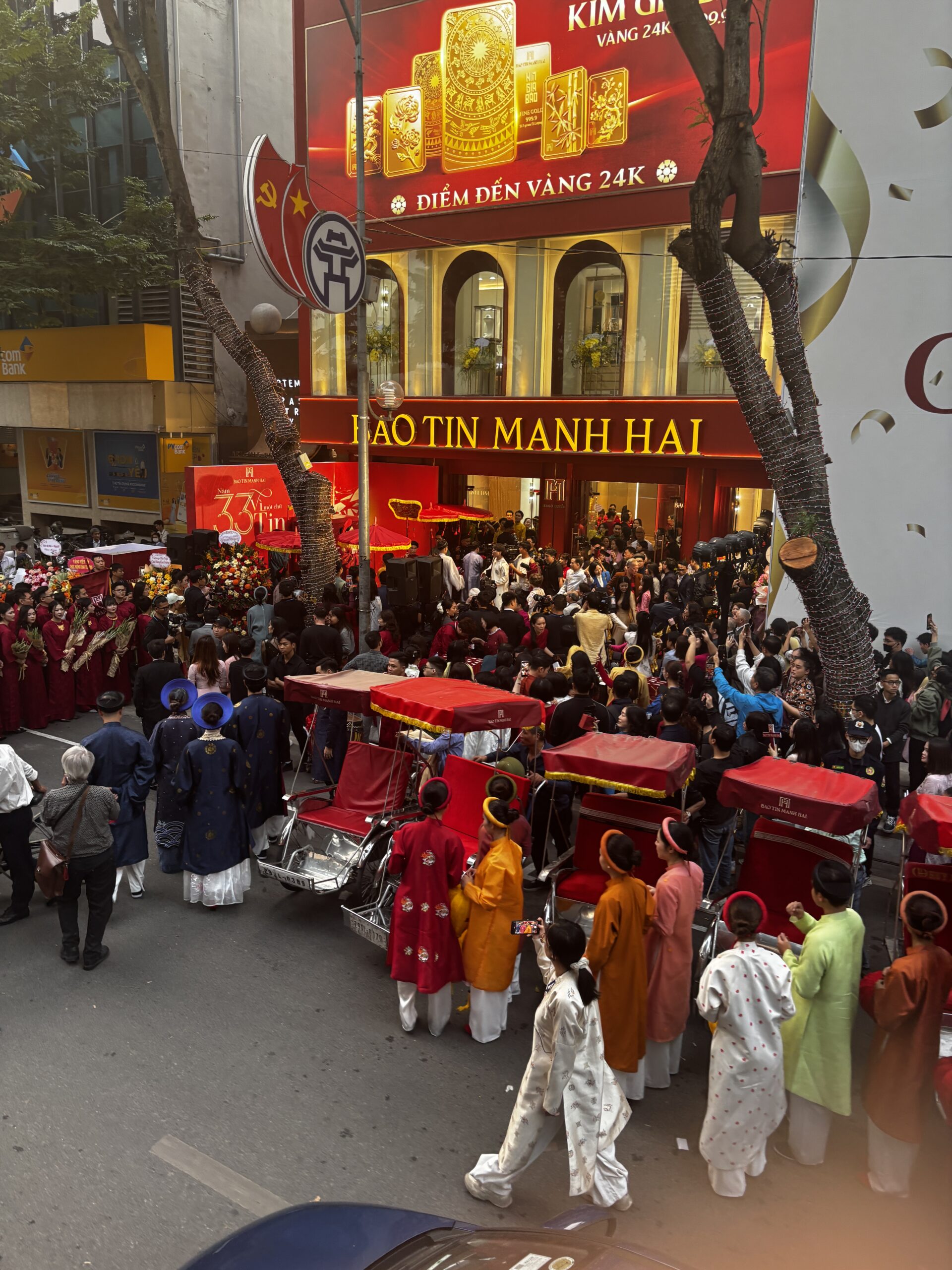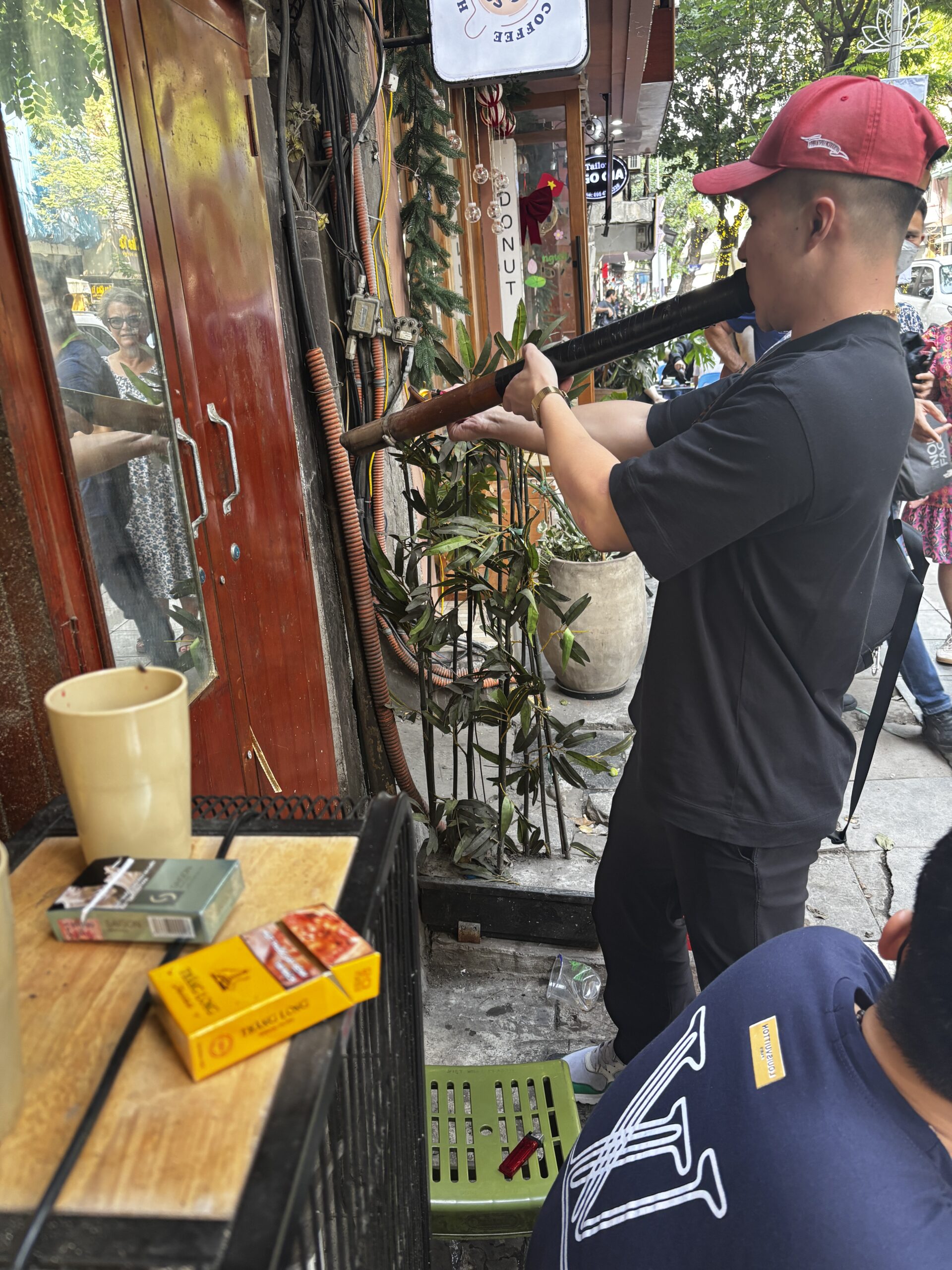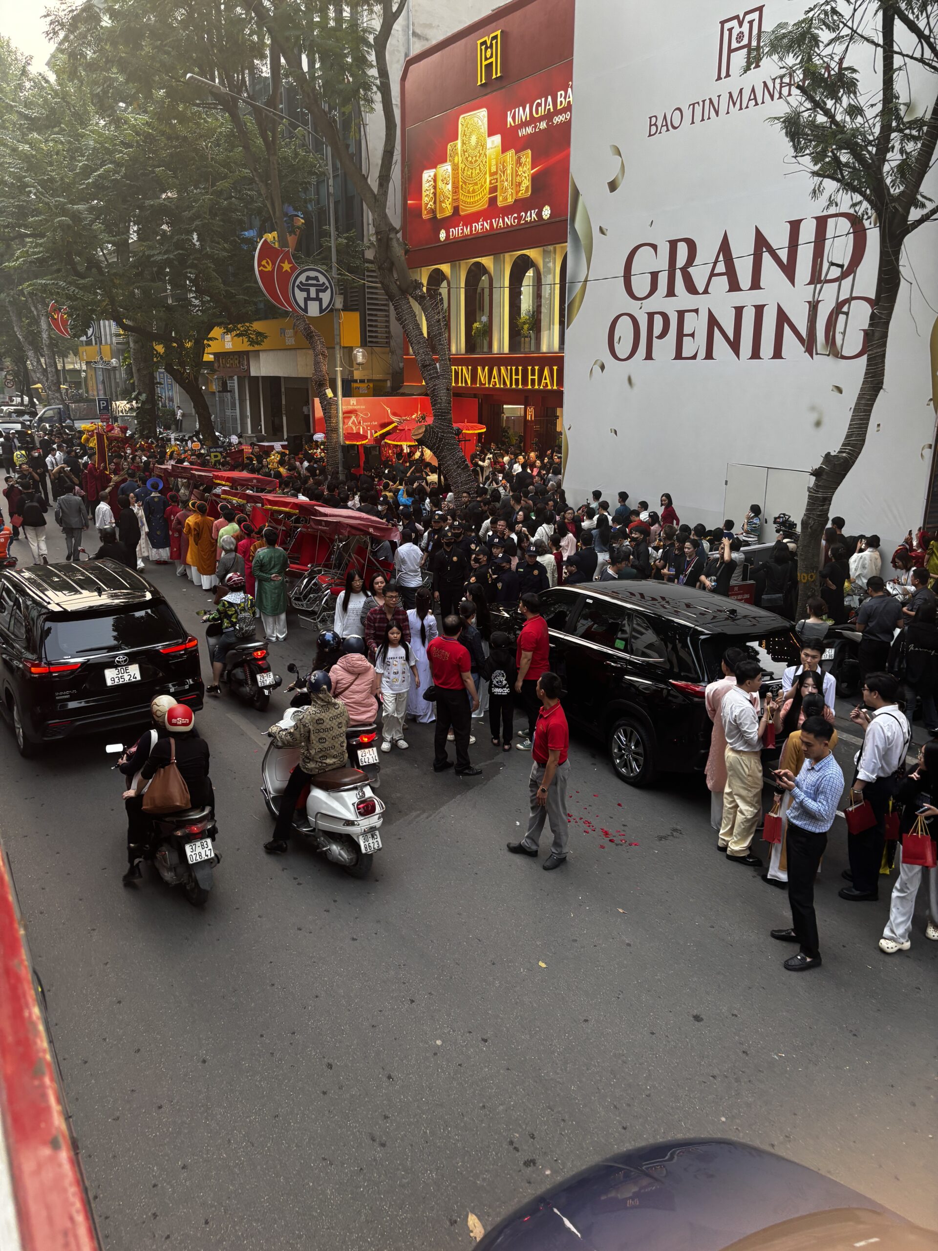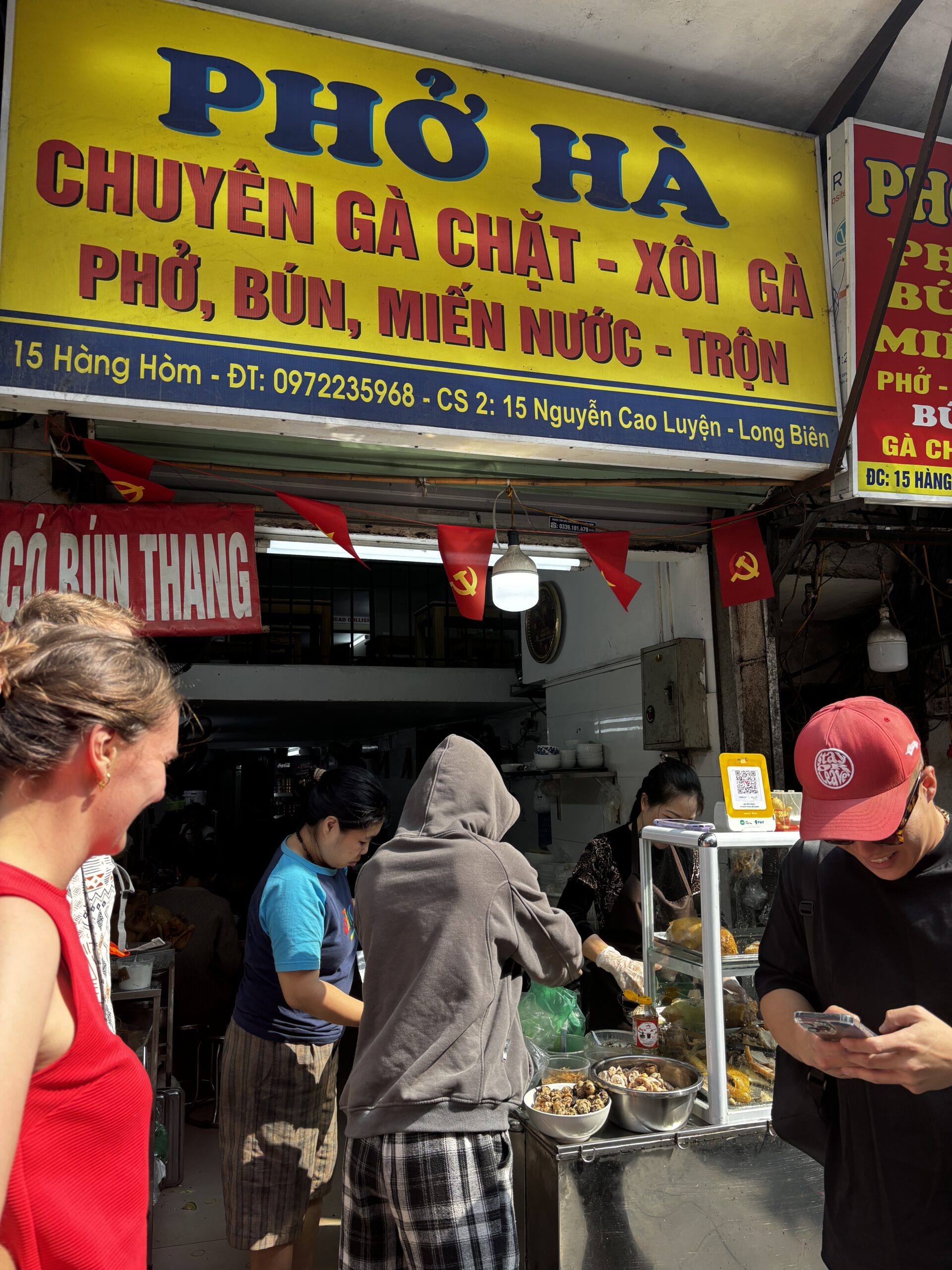 The traffic in Ha Noi is so chaotic. There doesn’t seem to be any reasoning on which way traffic is flowing or who has the right of way. Everyone just seems to be in the intersection and blowing their horns while moving along. It’s even worse when you try to cross the street. On one of my tours we walked through the Old Quarters. We were told to walk with confidence, don’t make eye contact with the drivers, and not to move backwards cause there will already be a motorbike or car moving in that space. I was glued to the guide every time we crossed the street. Walking has other hazards like having to walk in the streets because the sidewalks are filled with motorbikes, or stores and restaurants have taken over the spot of sidewalk.