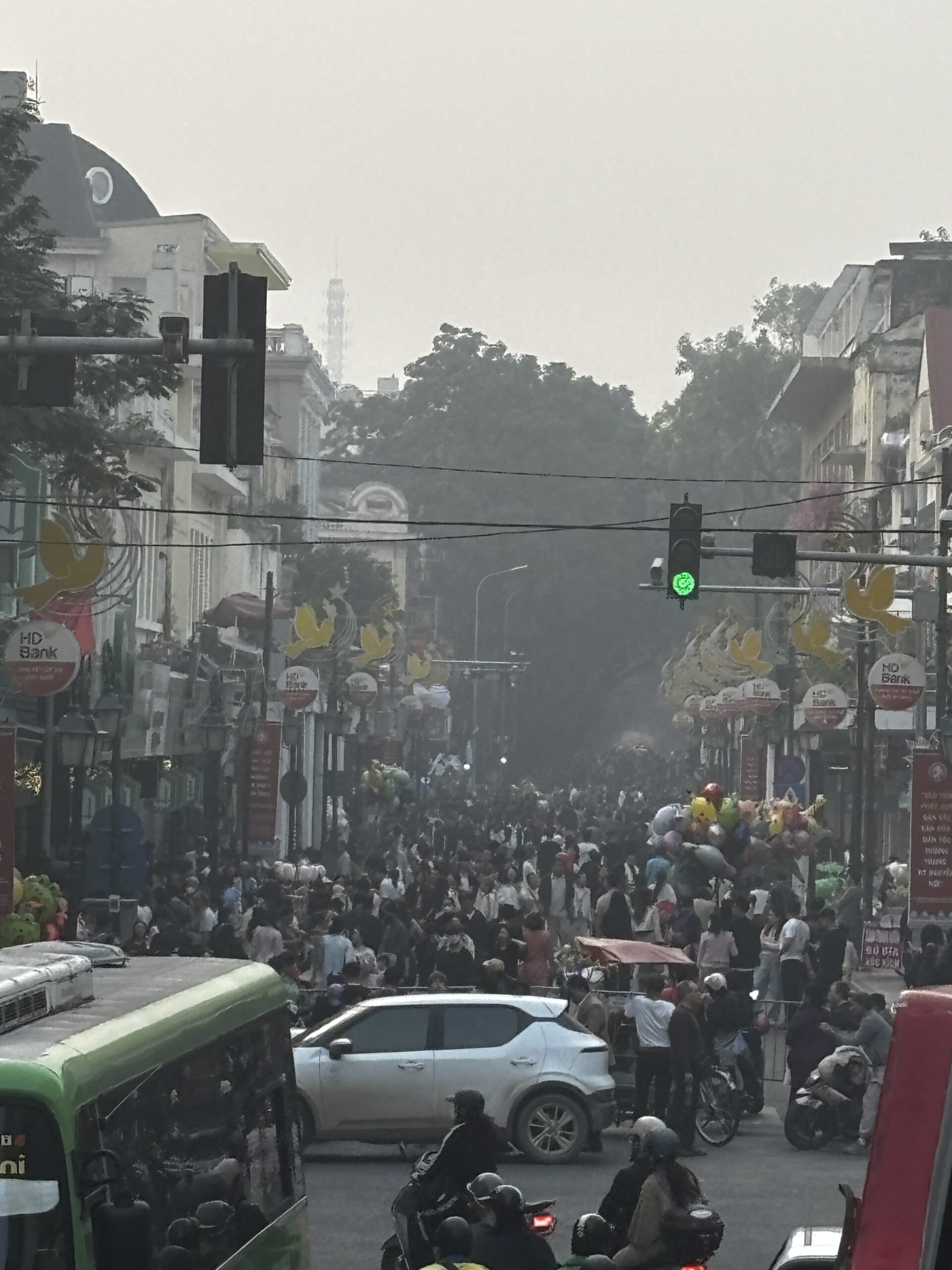 Ha Noi is a nice place to visit, just bring a supply of masks with you. The 2nd picture below looks like a cloudy day… no, that’s the smog!!!