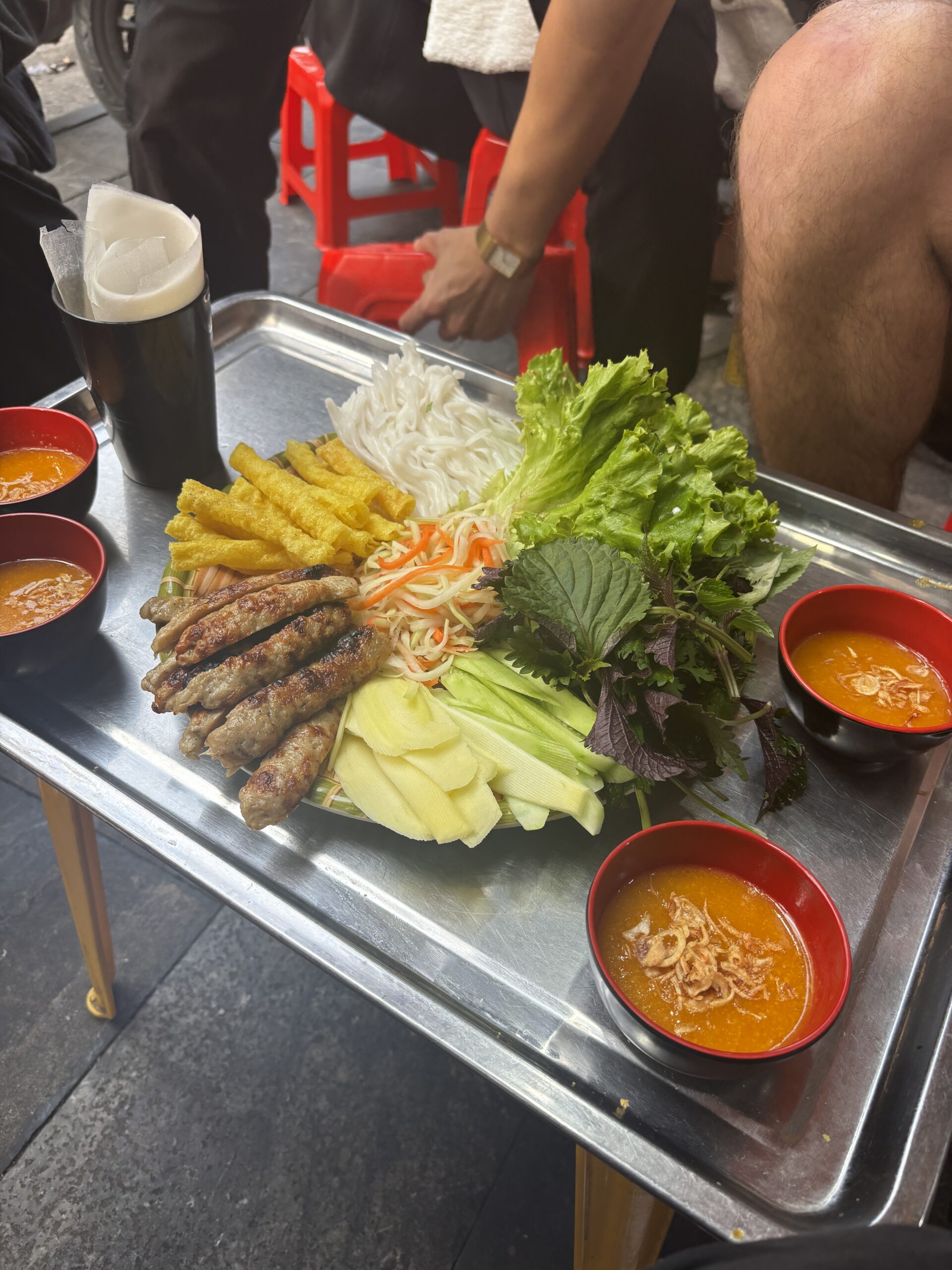 The tour mentioned above was a food tour through Old Quarters. This actually turned out to be us visiting our guide’s family members. The fist stop was his mothers food stand. However, I must say, the food was good. We had dry noodles (without soup). I was skeptical but gave it a try and was pleasantly surprised. Our next stop I believe were his aunties. He told us about the 2 women that owned the restaurant (sisters) and that one handles the meat and the other handles the soup/broth. One of the tour members jokingly asked… are these your aunties. He laughed it off, but we thought they were. We had noodles again and I could have done without this one. Our next stop was unique; we made our own individual Vietnamese wraps. I used to order these in Houston, but it was good to see how it was all put together. We first needed to use the lettuce to wet the rice paper, then add the ingredients (grilled pork, pickled slaw, noodles (bún), cucumbers, and herbs). We didn’t have peanut sauce, but what we had was good. This stop was no relations to our guide. Our last stop was dessert, which was coconut ice cream. I asked if this ice cream was unique to Vietnam. I asked because I hadn’t had any in Vietnam and remembered the unique ice cream I had in Turkey. The texture was almost like taffy where it was hard to pull apart, but the ice cream was good. Anyway, the ice cream here was simply vanilla ice cream with sprinkles of coconut… disappointing!! I’ve come to realize that Vietnamese people eat a diet of noodles and soup (a lot of different variations, but still just noodles and soup).