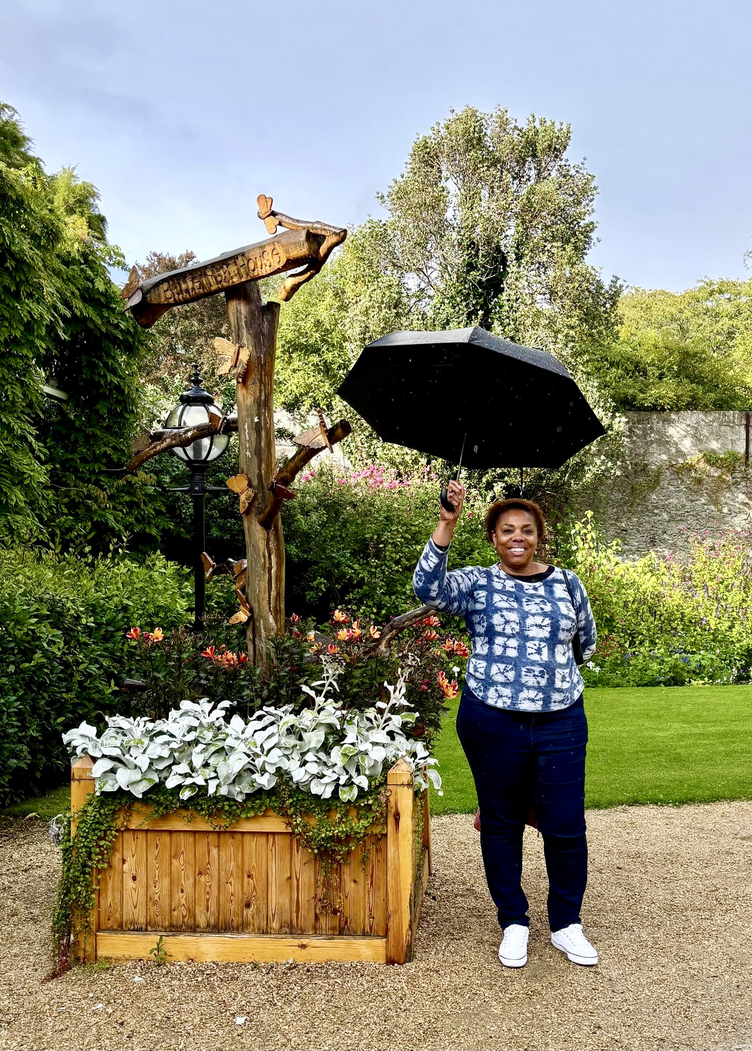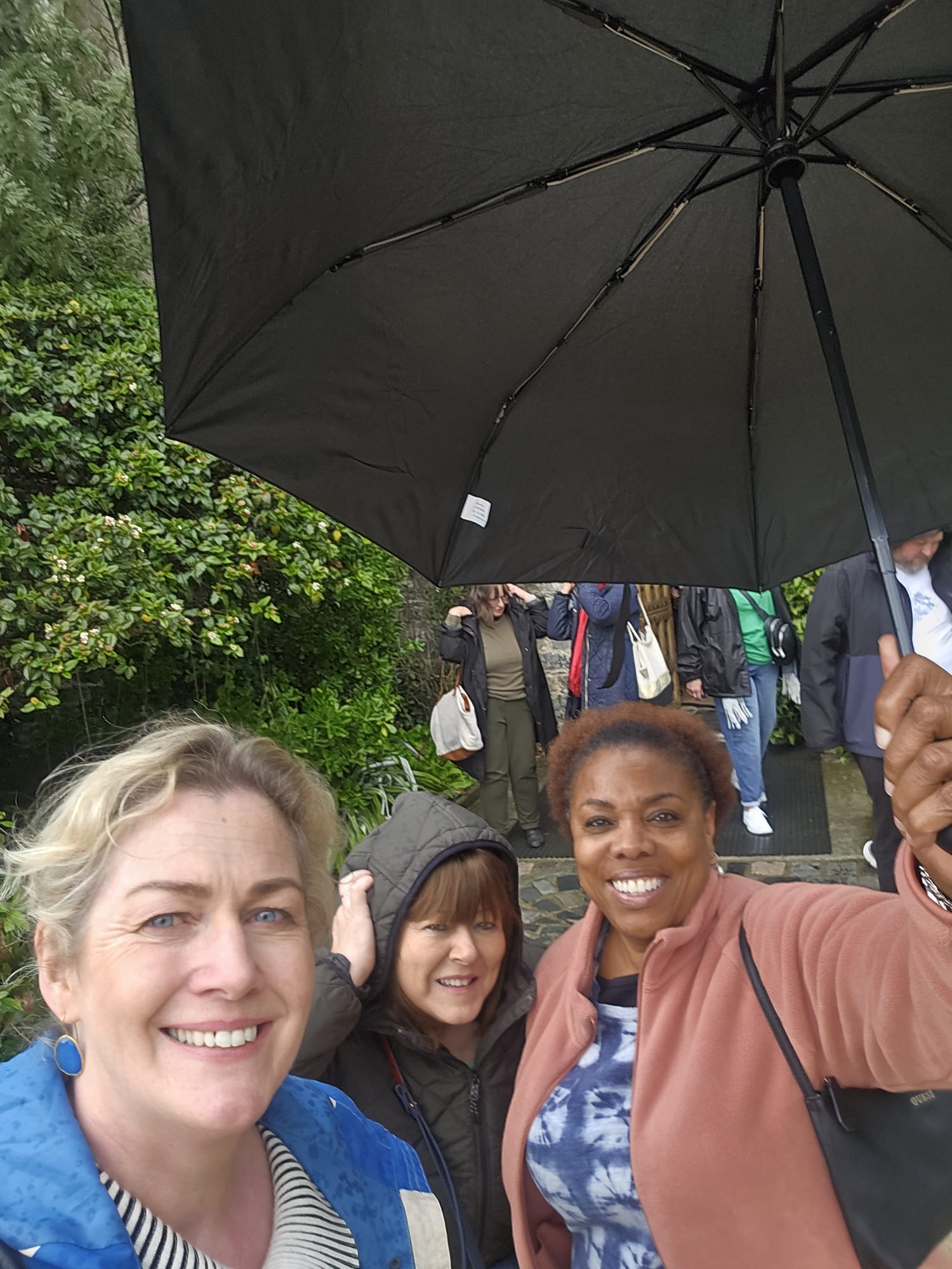 Another reason for visiting Dublin was catching up with new friends. When I was in Brussels, Belgium I met a group of nice ladies who were in town for the day. We were on a walking tour of the city and got a chance to spend a lot of time together and get to know one another. We exchanged numbers with me saying I would contact them when I was in their city. I originally was planning to visit in May 2026 when it would be warm, but my itinerary changed with me going there sooner. So before I arrived in Dublin I texted one of the ladies and she immediately set-up a lunch and tour experience. Paula and Caroline picked me up at the hotel and we had lunch at the Malahide Castle and later toured the castle and garden. It had started raining while we were in the castle and I was thinking that we would call it a day. However, I’ve learned that a little rain does not stop the folks in Dublin from enjoying their day. You’ll see the rain in the pictures below.