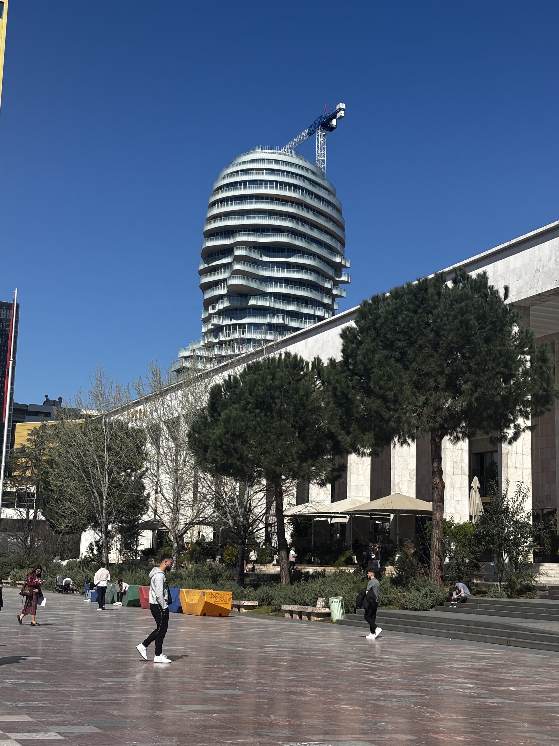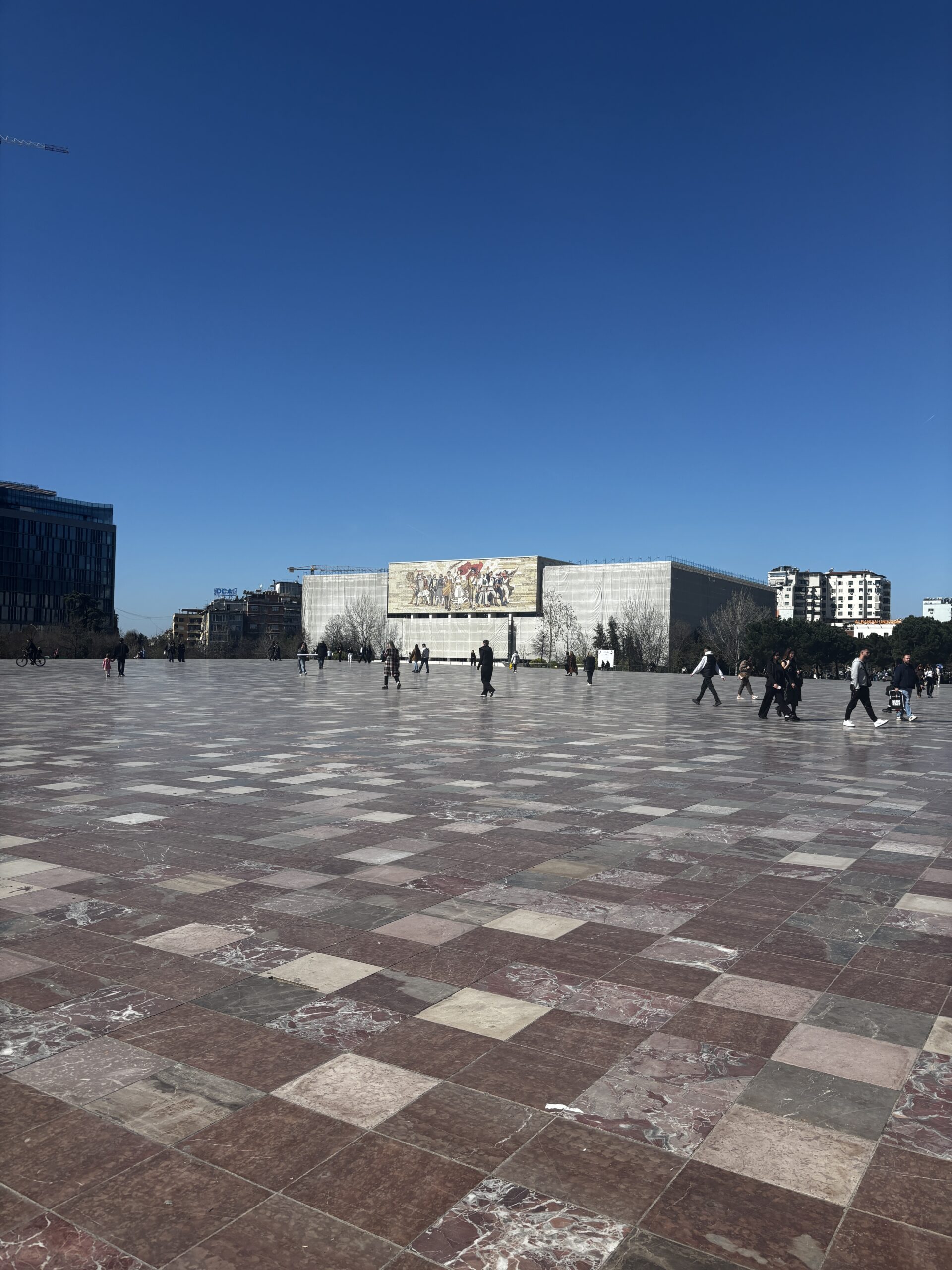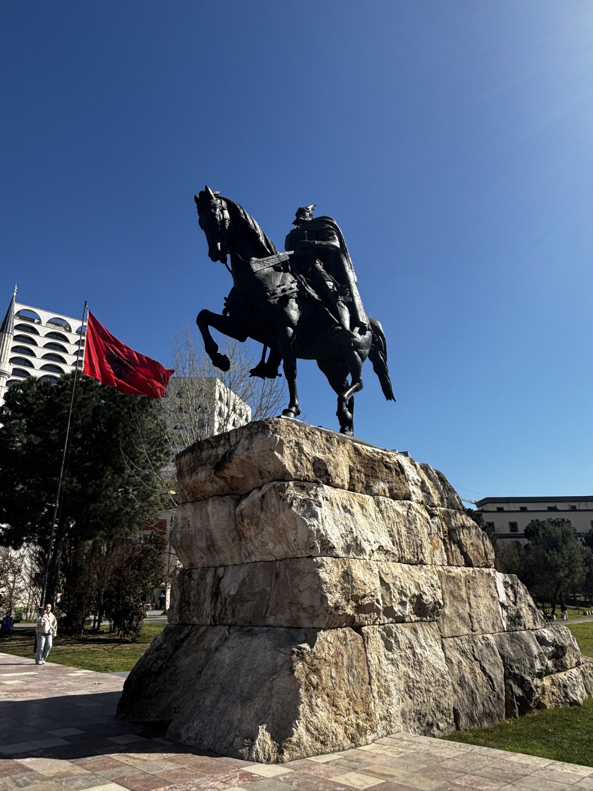I visited the Skanderbeg Square, which is a huge space (about 40,000 square metres). One of the first things you notice is an unusual looking building in the shape of a face. Google indicates that it’s a large bust of the Albanian national hero, Skanderbeg. It’s a mixed-use building with residences, offices and retail.