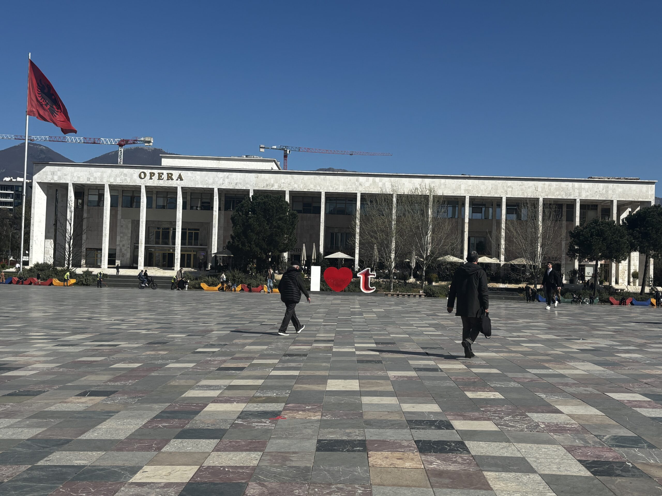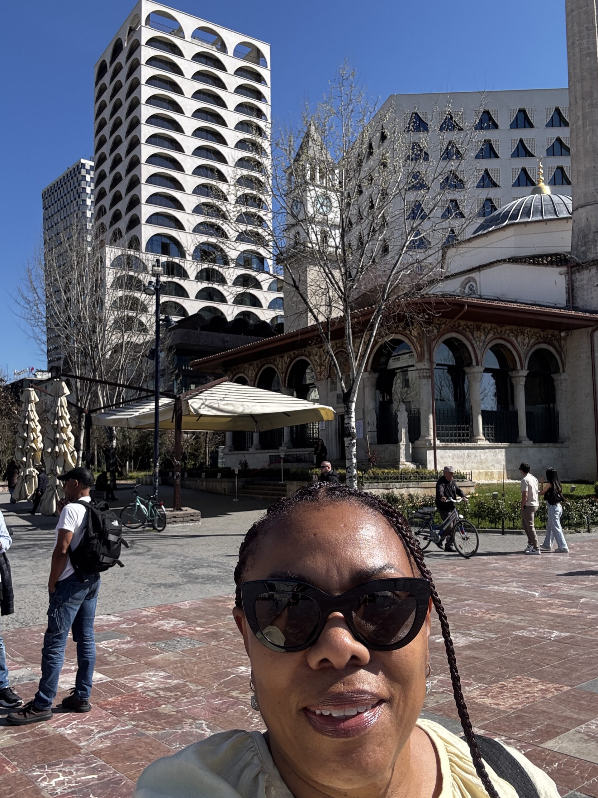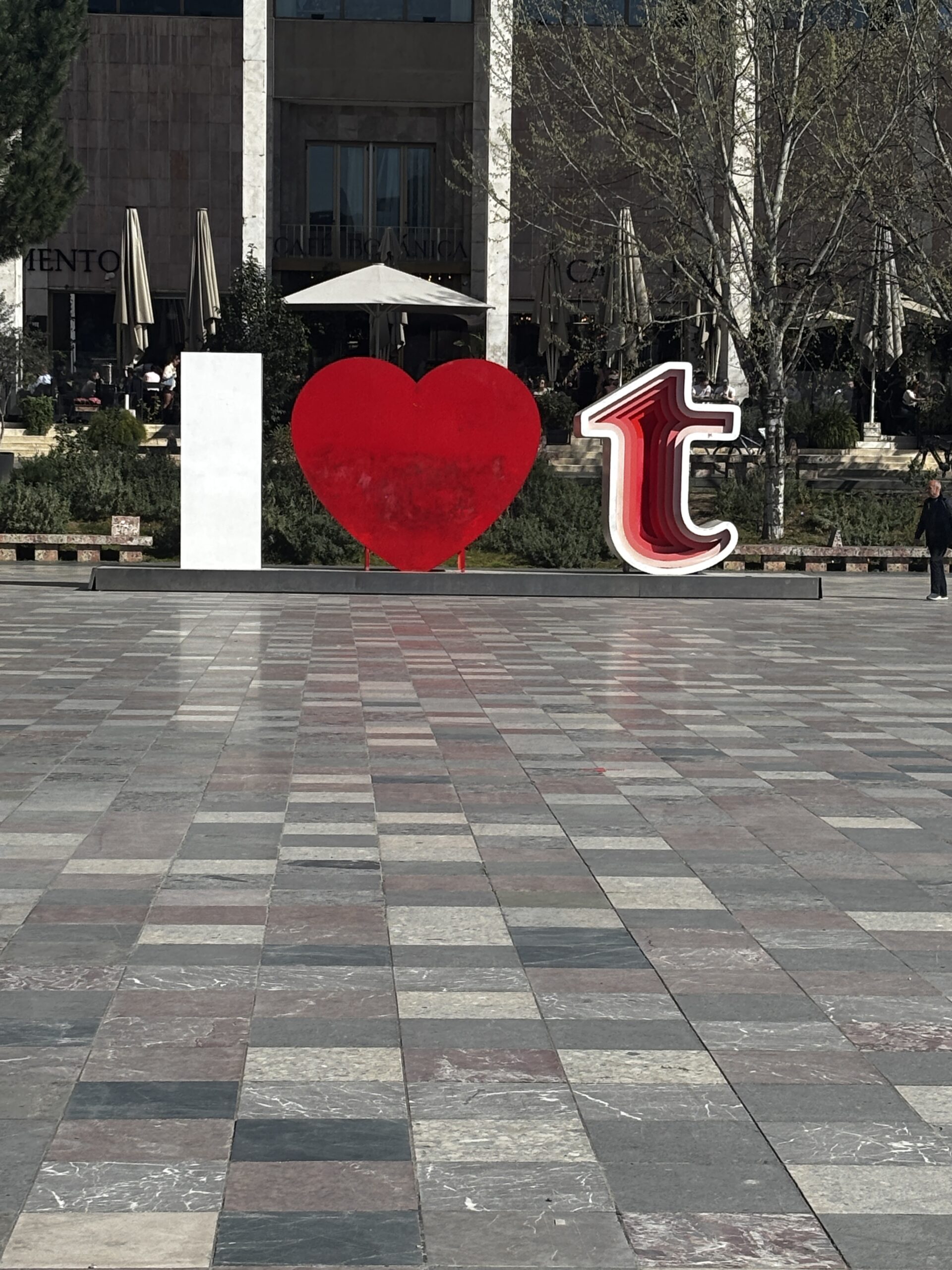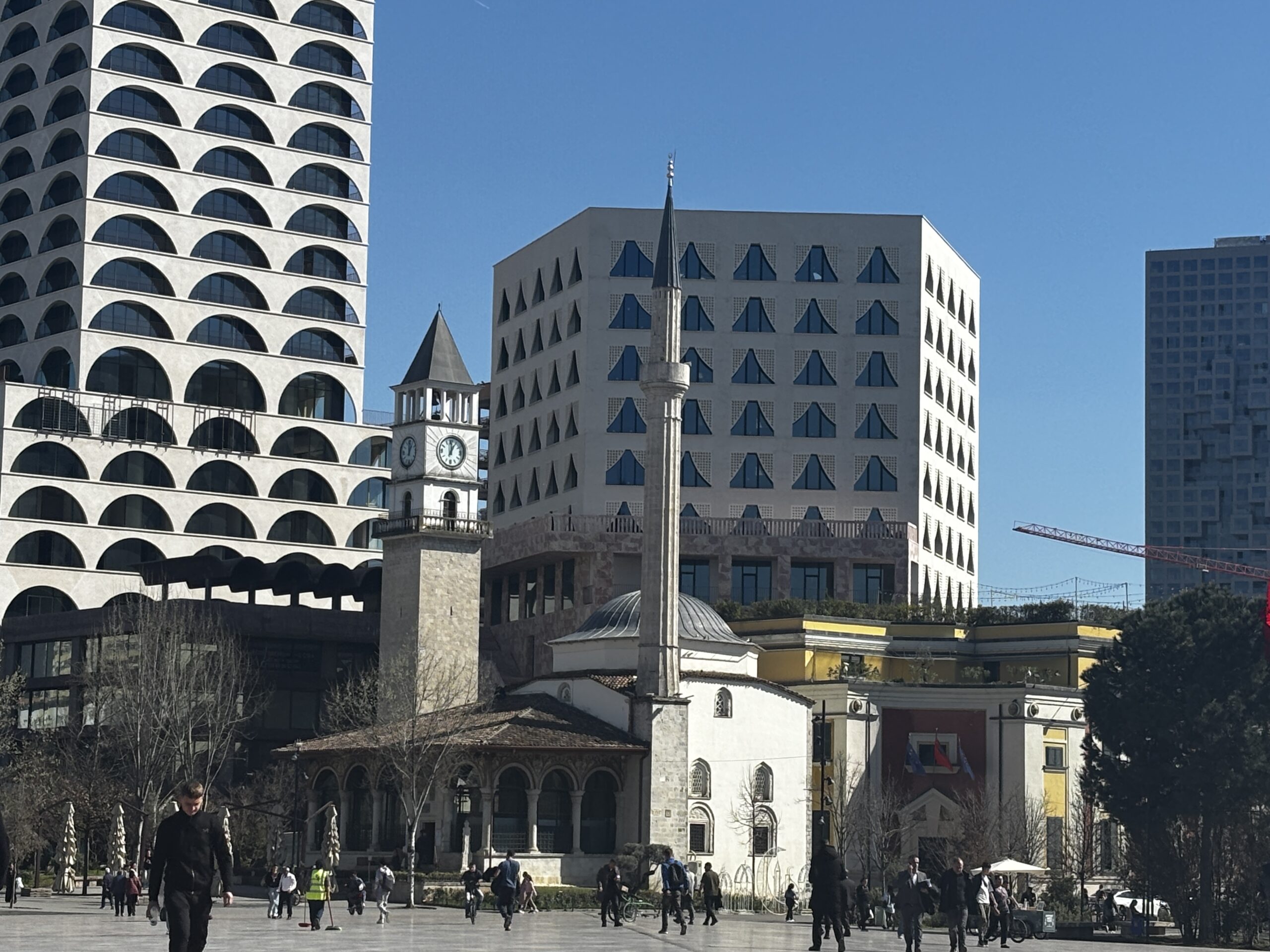 I visited the Skanderbeg Square, which is a huge space (about 40,000 square metres). One of the first things you notice is an unusual looking building in the shape of a face. Google indicates that it’s a large bust of the Albanian national hero, Skanderbeg. It’s a mixed-use building with residences, offices and retail.