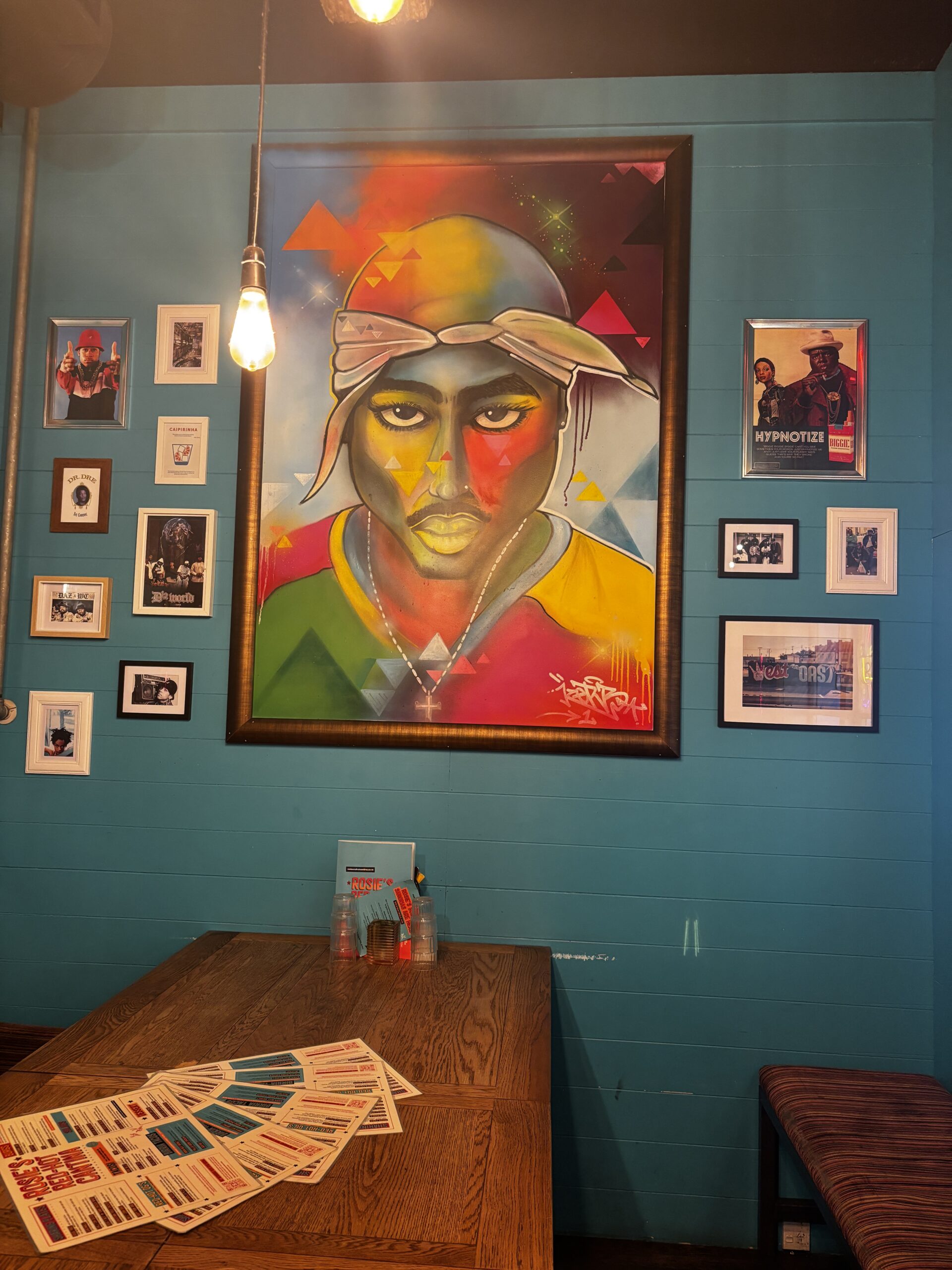 Another excursion was a ferry ride around the harbour, where I was able to see houses in the hillside and the mountains. As I mentioned earlier, the wharf area is where people came to eat and during dinner time, the restaurants are buzzing with people. I decided on a Mexican restaurant simply because it was overflowing with people, I figured the food must be good. And sure enough it was! I ordered what was called a monster taco. I wasn’t warned that the taco could feed at least 4 people (the pic below doesn’t show how huge it was). I gave up eating with maybe about half of it eaten. Also, while waiting for my food, I’m checking out the place. And the wall in front of me has a mural of Tupac, and there’s a small picture of Biggie Smalls (pic below). The owner of the place must be a fan.
